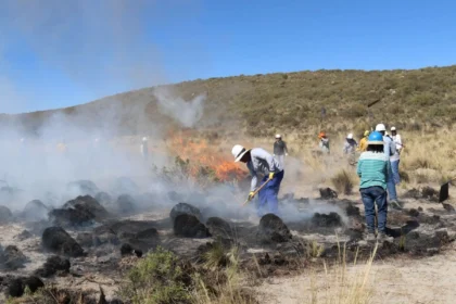 Incendio forestal mantiene en alerta a pobladores y moviliza a autoridades en Caylloma