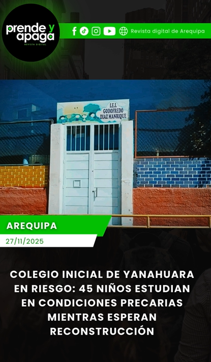 La falta de un proyecto de reconstrucción mantiene en grave riesgo sanitario y estructural a 45 niños de 3 a 5 años del colegio inicial Godofredo Díaz Manrique, en el distrito de Yanahuara, quienes desde inicios de este año reciben clases en módulos prefabricados precarios instalados junto a una chacra. Ante esta situación, padres de familia realizaron un plantón para exigir una solución inmediata.