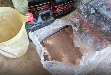 Asimismo, se encontraron insumos químicos esenciales para la producción de estupefacientes, como ácido industrial, bicarbonato y sesquicarbonato de sodio, además de tres ollas metálicas con restos de droga, bidones con sustancias químicas, utensilios para filtrado y una balanza digital, lo que confirmaría la actividad permanente del laboratorio.