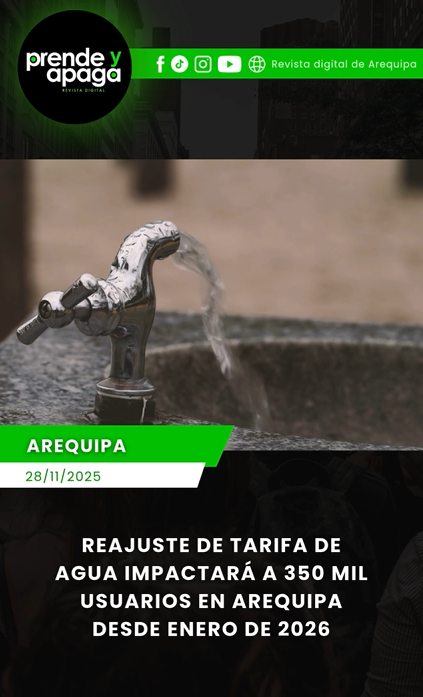 El reajuste de la tarifa del servicio de agua potable afectará a alrededor de 350 mil usuarios de Arequipa a partir de enero de 2026, según informó Saúl Alire, jefe de la Superintendencia Nacional de Servicios de Saneamiento (Sunass) en la región. El impacto en los recibos se sentirá principalmente entre enero y febrero, debido al ciclo de facturación que aplica la empresa prestadora del servicio.