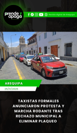 Los taxistas formales de Arequipa anunciaron una protesta con marcha rodante para este miércoles 26 de noviembre, luego de que el Concejo Provincial de Arequipa rechazara la modificación de la Ordenanza Municipal N.° 927, que planteaba eliminar el plaqueo obligatorio para el servicio de taxi. La decisión mantiene vigentes las restricciones que afectan a más de ocho mil conductores, generando el rechazo del gremio.